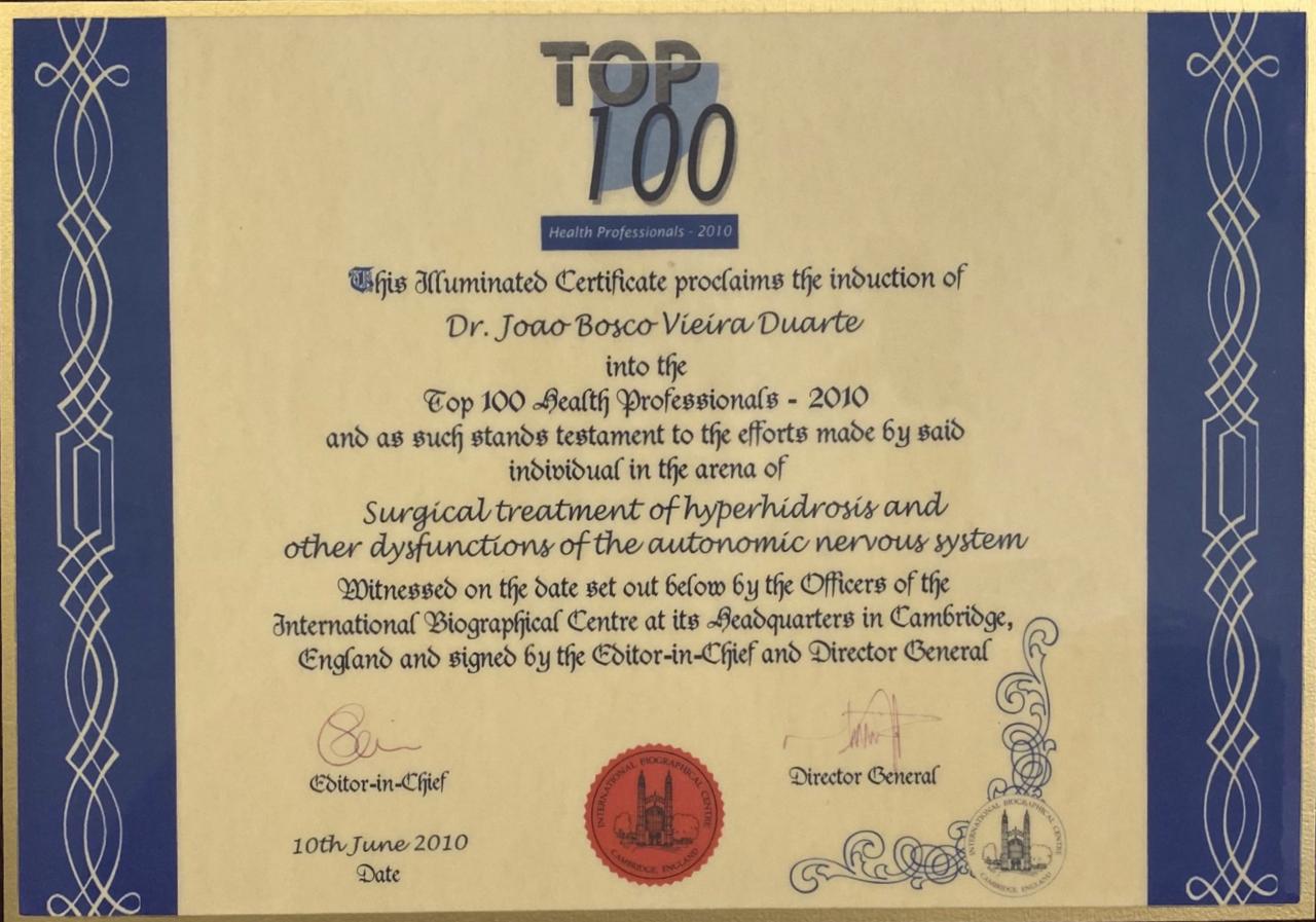 Duarte, João B.V., Kux, P.: Improvements in Video-Endoscopic Sympathicotomy for the Treatment of Palmar, Axillary, Facial and Palmar-Plantar Hyperhidrosis. The European Journal of Surgery 1998, Supp 580:9-11