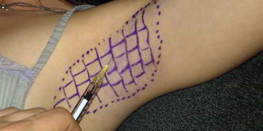 It’s one of the commercial names of botulinum toxin. Botulinum toxin is a protein complex produced by Clostridium bacteria, which causes a disease called botulism. For medical purposes, a purified and injectable form of the botulinum toxin is used. When injected on the area of skin affected by hyperhidrosis, it blocks the nervous stimulus that make the gland sweat. When well applied, it usually works for 7 months, and may be repeated. It’s indicated for armpit hyperhidrosis. Its use is questionable for cases of palm print and feet hyperhidrosis.